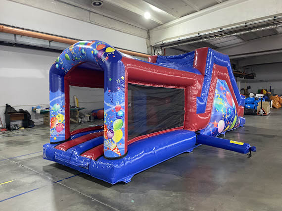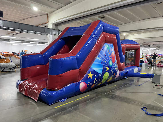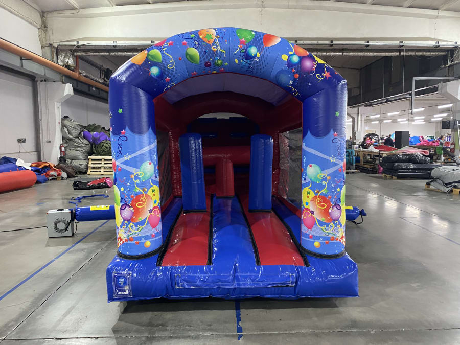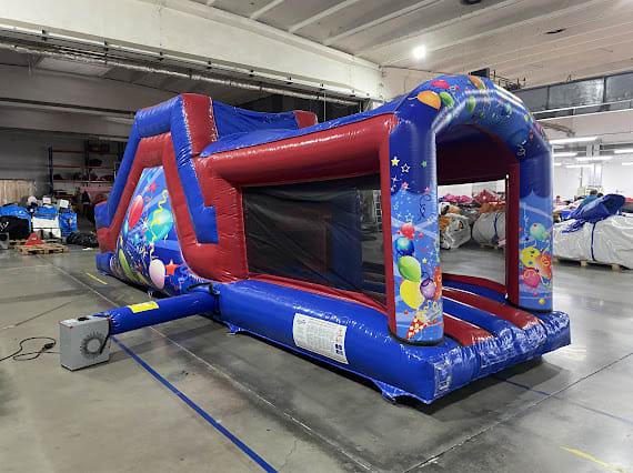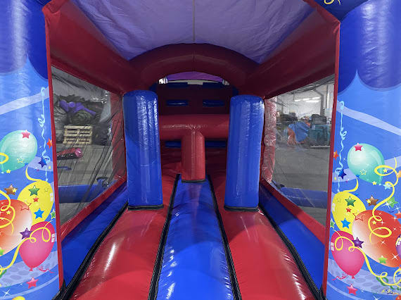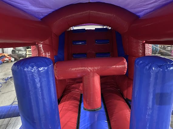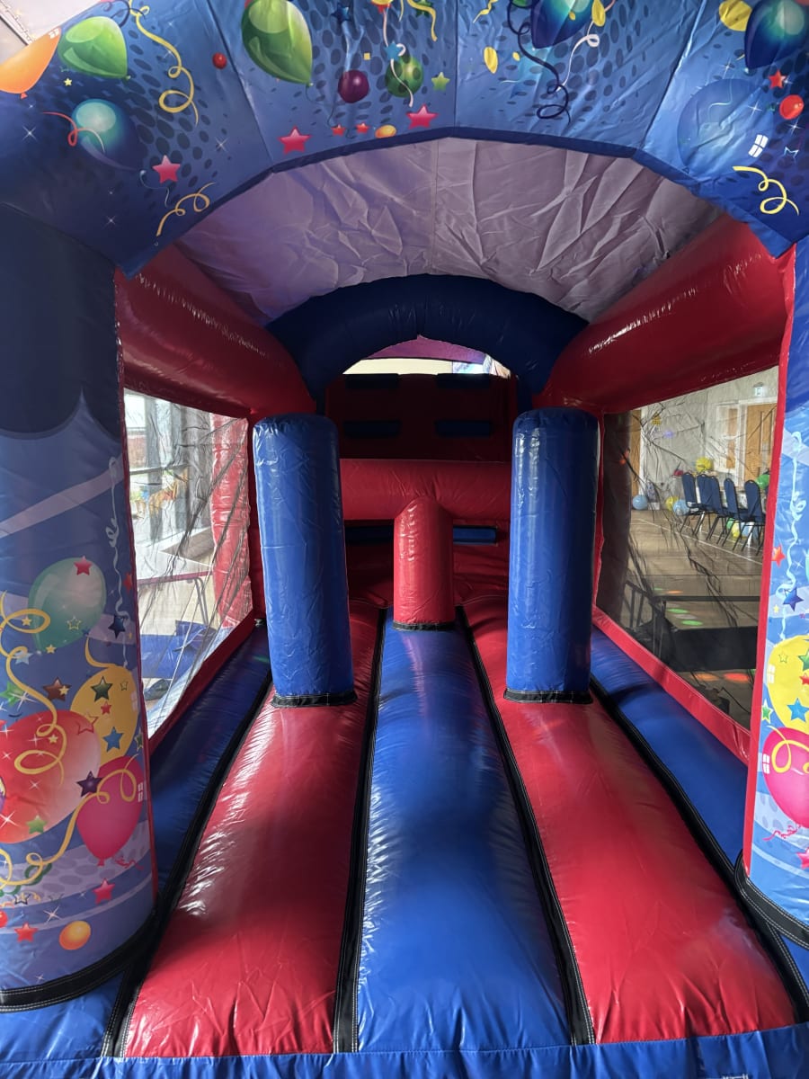Make your next event unforgettable with the 27foot Party Time 1 Part Assault Course. This 27 foot long inflatable obstacle course features a 7 foot slide and fun bish-bash-bosh obstacles. Bright blue and red colours create a party-ready look. Perfect for birthdays, school fairs, and community events. Book this popular inflatable and enjoy safe, thrilling play for children. 🪂