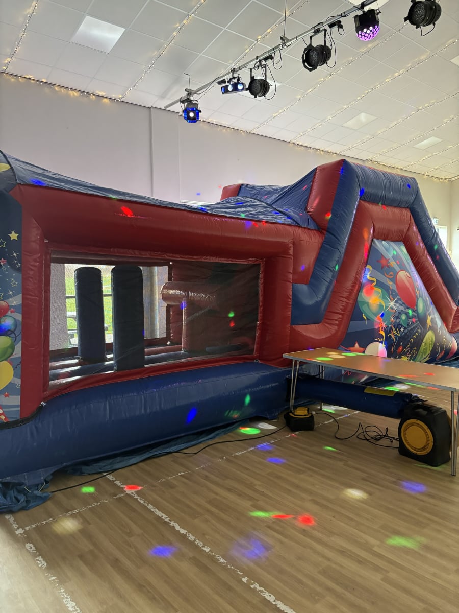 We offer bouncy castle hire 27foot party time 1 part assault course in Blackpool, Fleetwood, Poulton-Le-Fylde, Lytham-St Annes, Warton, Freckleton, Kirkham, Wesham, Preston, Elswick, Singleton, Thornton, Cleveleys, Wrea Green, Bispham. Search for assault course hire Blackpool or inflatable obstacle course Blackpool and book today. 📍
