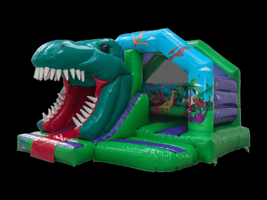 Ready to bring the Jurassic period to your back garden? Fylde Coast Bouncy Castles is thrilled to introduce our brand new 12ft x 15ft 3D Dinosaur Front Slide Combi. This isn't just a bouncy castle—it’s an immersive prehistoric experience featuring a massive 3D T-Rex bursting out of the front!