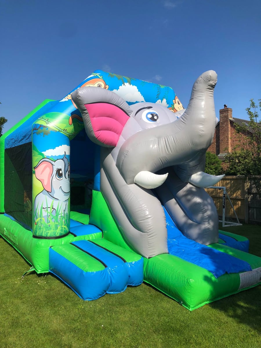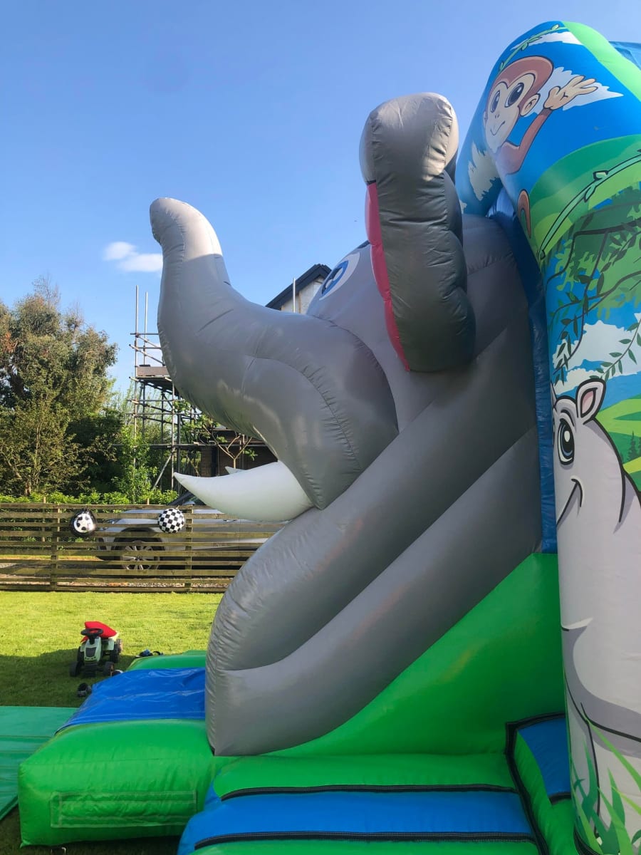 Planning a Birthday party or jungle themed event for your little ones? Then this is the castle for you. This amazing 3D Elephant bouncy castle with slide is also a disco ready bouncy castle, linked to Bluetooth on your mobile you can keep the children and adults entertained all day. The music player has an extra cost so remind us when you make the booking. At a whopping 18 foot which includes a 4 and a half foot slide it can hold up to 8 people up to 1.0m which makes it ideal for all occasions including indoor venues and large garden parties. All of this is set up for you in less than 30 minutes meaning you can get on with organising the rest of the party/event.