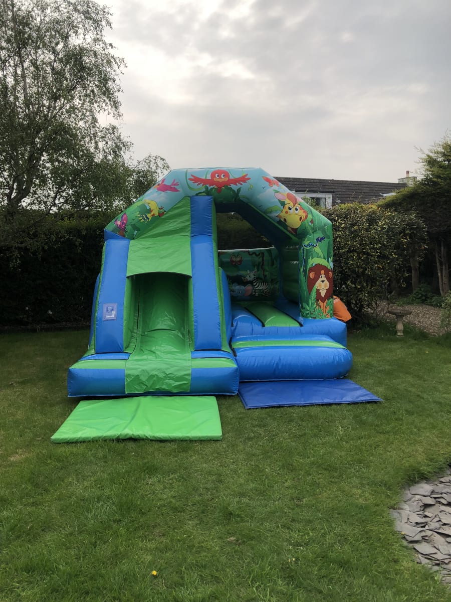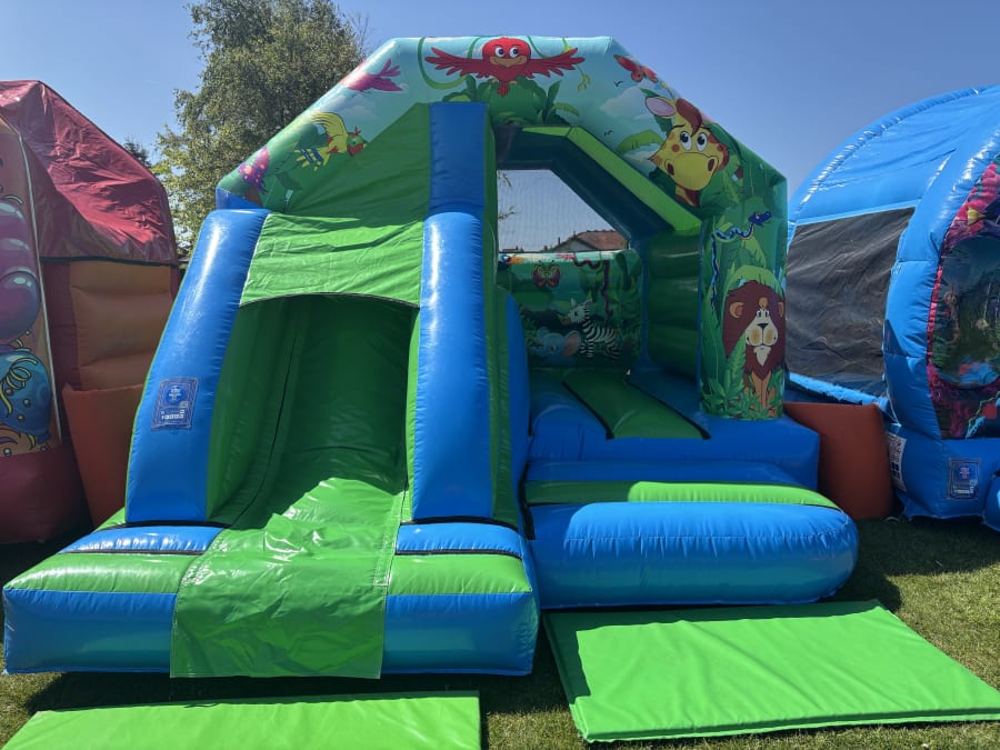 Booking is simple! Use our online booking system to secure your date. We recommend booking early as this jungle-themed bouncy castle with a slide is one of our most popular inflatables.