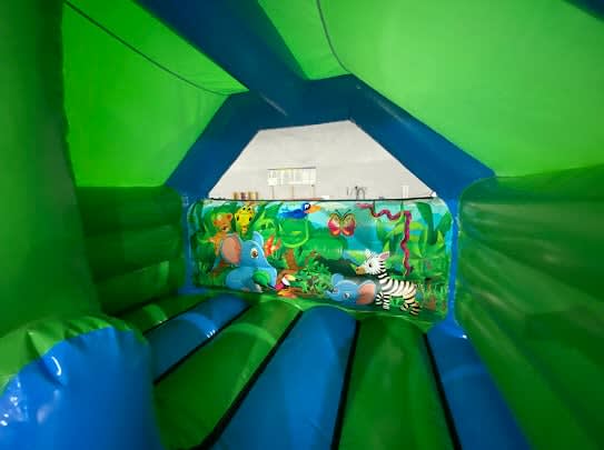 Bring the wild adventure to your next event with our 12ft x 15ft Jungle Slide Bouncy Castle! This vibrant inflatable is packed with jungle-themed fun and is the perfect centrepiece for kids' parties, school events, Christenings, baby showers and community gatherings. With its built-in slide and fully enclosed design for added safety, this bouncy castle guarantees endless entertainment for the little ones while keeping parents stress-free.