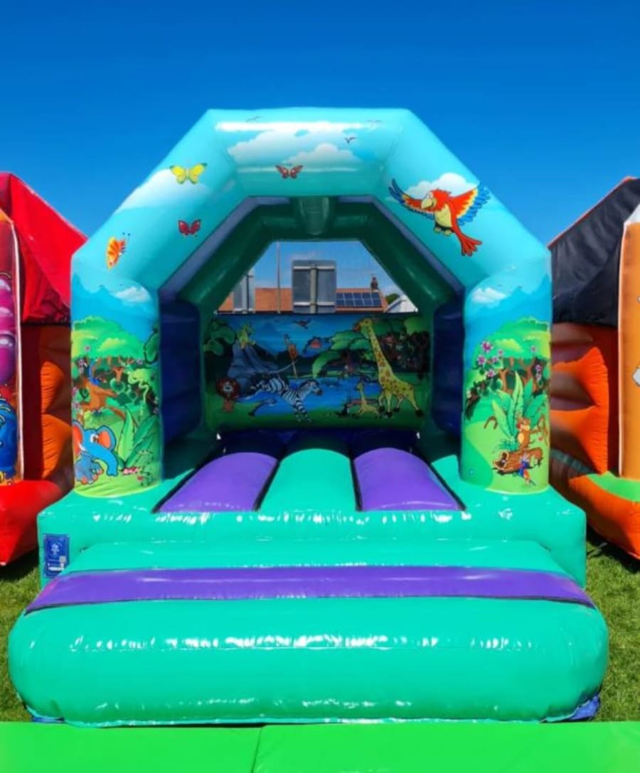 Are you planning a Safari party for your little monkey? Your party guests are bound to go wild for our Safari/Jungle themed castle! It's a special castle that always attracts our customers with its bright colours and exciting animal features.